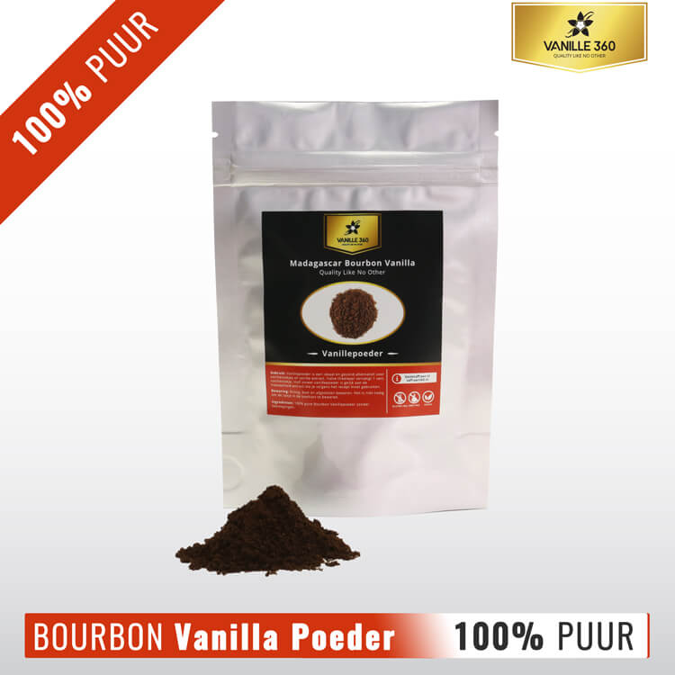 Onze 100% pure Bourbon vanillepoeder is gemaakt van hele vanillestokjes. Vanillebonen vermalen tot vanillepoeder zonder enige toevoegingen.